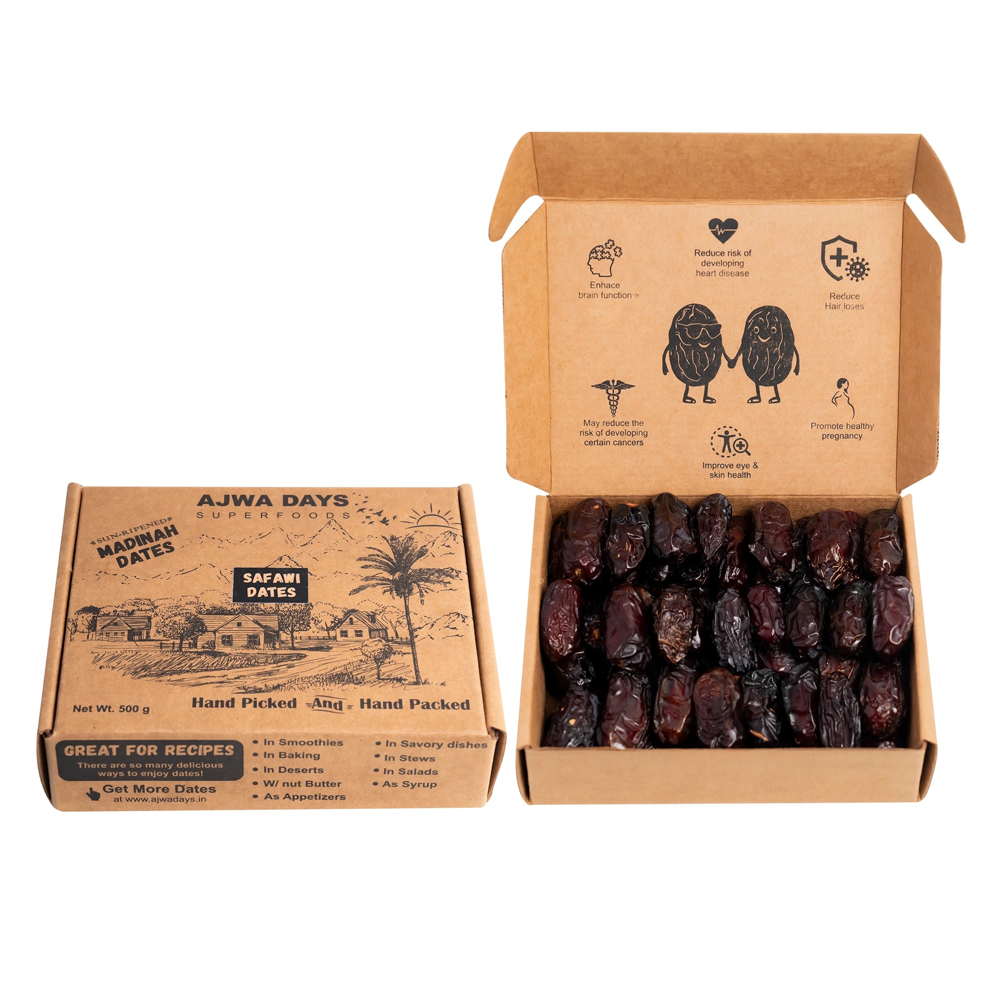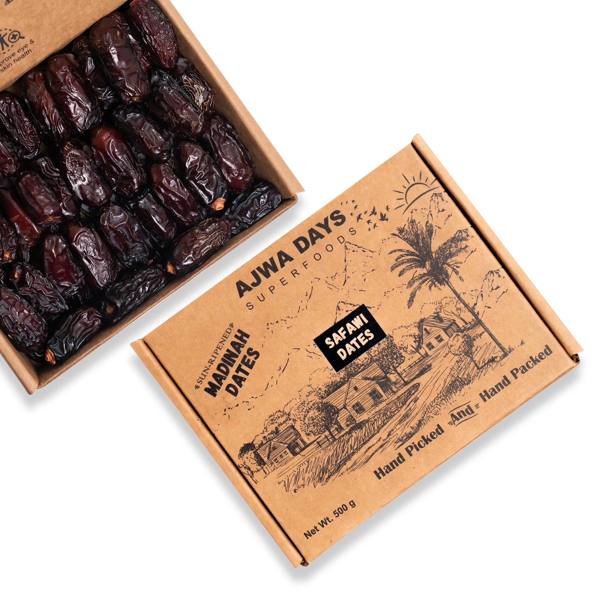 Safawi Dates from Ajwa Days are known for their deep color, soft texture, and naturally rich sweetness. Carefully sourced and naturally matured, these dates deliver a refined taste experience rooted in tradition and quality.